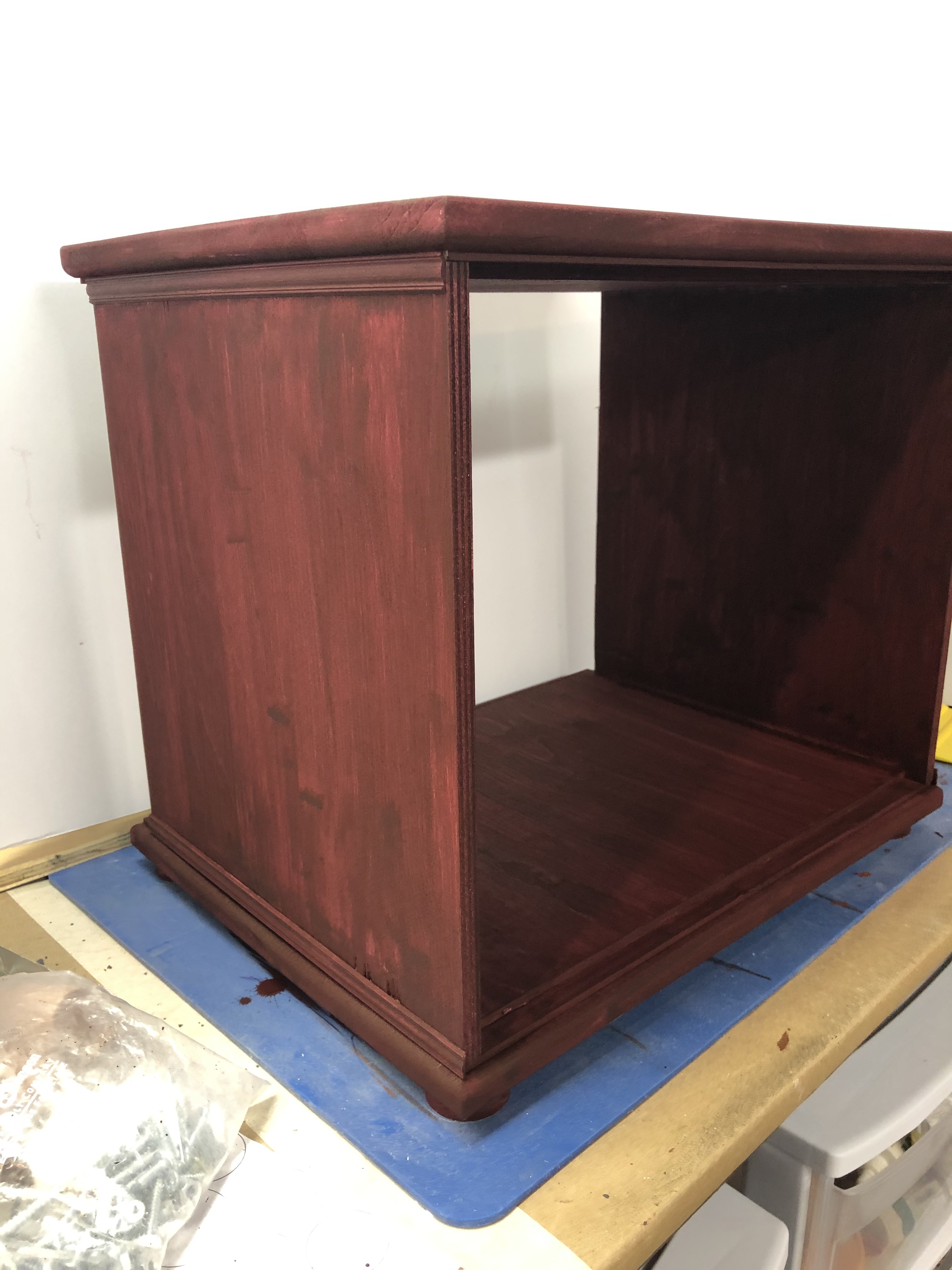 I used General Finishes Rosewood stain for the color. This also took 3 coats of Polyacrylic topcoat.